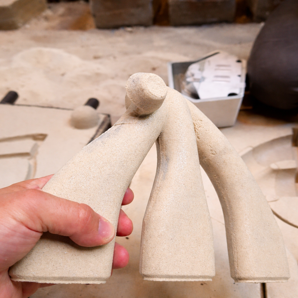 Вторият и най-достъпен метод за интегриране на адитивни технологии е sand casting. Формоването се извършва чрез уплътняване на формовъчен пясък с добавки и фуранова смес около предварително поставен модел. Получава се точен негатив на външната геометрия, а чрез сърцеви кутии се оформя вътрешната структура на отливката.