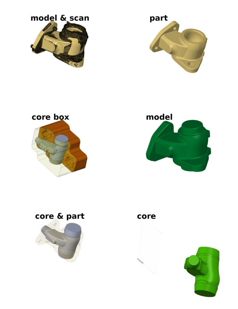 The core challenge was the design of the casting tooling for sand molds. This included the pattern model and a core box, produced via 3D printing, used to form the internal geometry of the part.